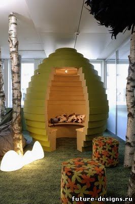 Но это было маленькое вступление, а речь сейчас пойдёт о дизайне интерьера одного из многочисленных офисов компании, который располагается в городе Цюрих, Швейцария. Вот прекрасный пример того, как следует обустраивать рабочие помещения и офисы, чтобы создать для людей полноценно благоприятные условия для результативной и плодотворной работы. Прогрессивная корпоративная культура Google основывается на потенциале человека, ведь только непревзойдённые решения и креативные идеи работников способны вывести компанию в лидеры и стать лучшими среди лучших. Взяв такой курс, компания google обустраивает просто райские офисы для своих работников. Вы только посмотрите на фото. Да, ничего не скажешь, своеобразный дизайн интерьера офиса, не в каждой организации увидишь такое отношение к персоналу. Да что тут можно ещё говорить, просто смотрите, и вы сами всё увидите.